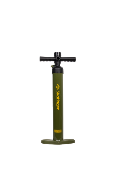 Bomba manual duradera y eficiente diseñada para inflar tablas de paddle surf. Cuenta con una empuñadura ergonómica para un uso cómodo, un manómetro grande para un inflado preciso y un sistema de doble acción para bombear más rápido. Compatible con todas las tablas SUP Skatinger y otras tablas inflables con válvulas estándar.
