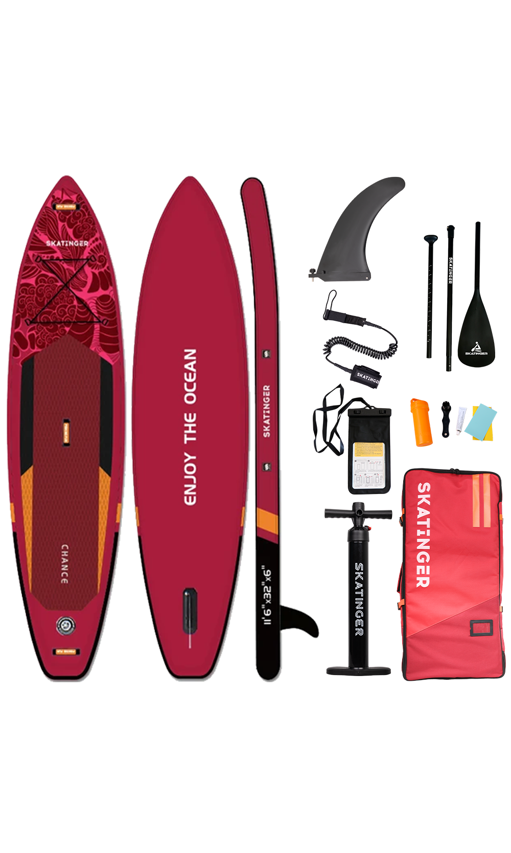La tabla SUP touring Chance Red ofrece un rendimiento elegante con una intensidad marcada. Diseñada para riders que valoran las travesías largas y una estética cálida y poderosa, esta tabla combina forma y función en un conjunto vibrante, listo para aguas abiertas.