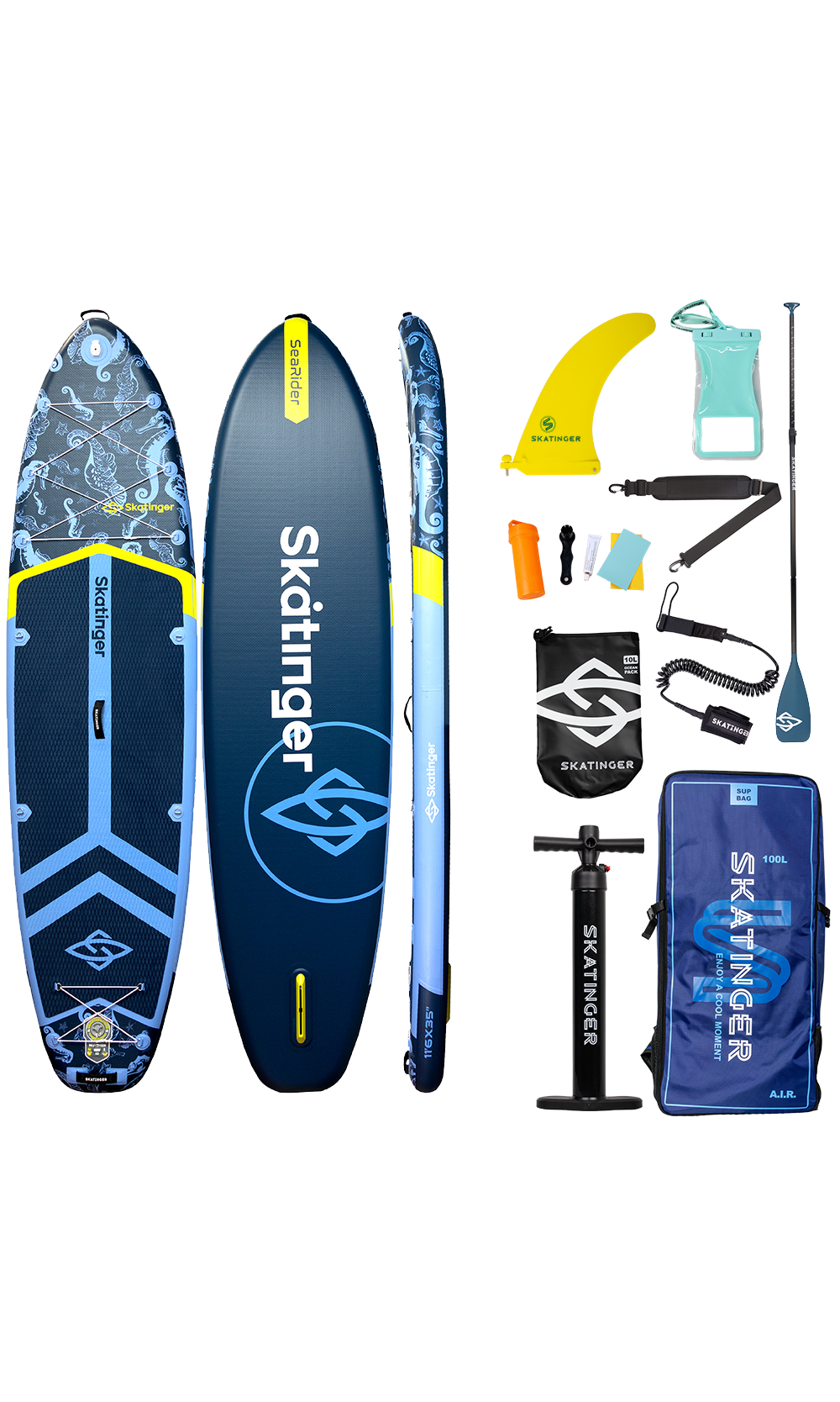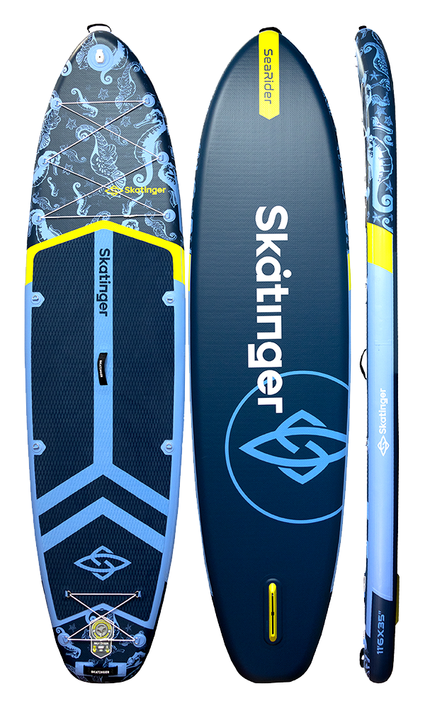 La tabla SUP inflable Sea Rider de Skatinger está diseñada para quienes buscan armonía entre diseño y rendimiento. Con una estética inspirada en el océano y una cubierta alargada, ofrece desplazamiento seguro, control preciso de la dirección y un equilibrio excepcional, ideal para quienes desean libertad de movimiento sin perder estabilidad.
