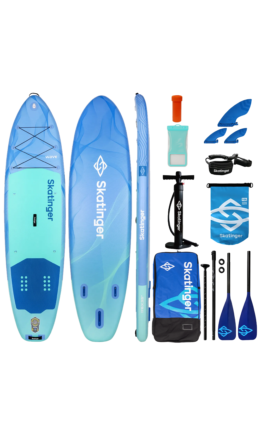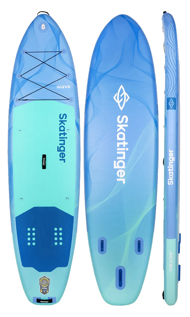 La tabla paddle inflable Skatinger Wave Blue combina un diseño refinado con un rendimiento seguro en el agua. Con sus profundos tonos azul océano y líneas gráficas fluidas, esta tabla captura la energía tranquila del mar mientras ofrece una experiencia de remo premium. Ya sea que te deslices por un lago tranquilo o disfrutes de un relajado recorrido costero, Wave Blue ofrece estilo, estabilidad y control suave.